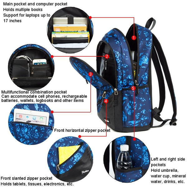 6. Main pocket and computer pocket, can accommodate multiple books and items, support for putting 17-inch laptop