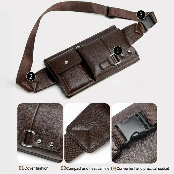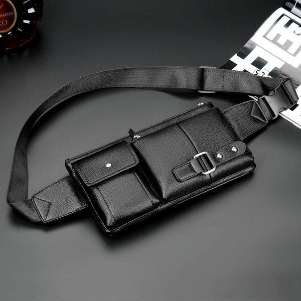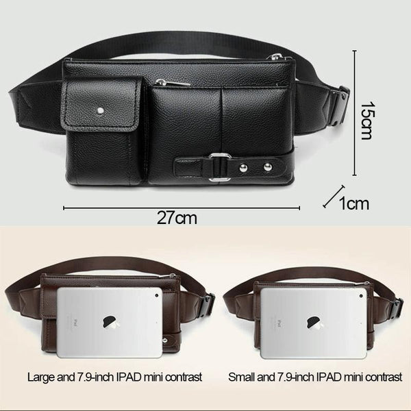 Universal Outdoor Men Shoulder Messenger Bags Retro Men Waist Bag, Size: L (27cm x 15cm x 1cm) (Black)