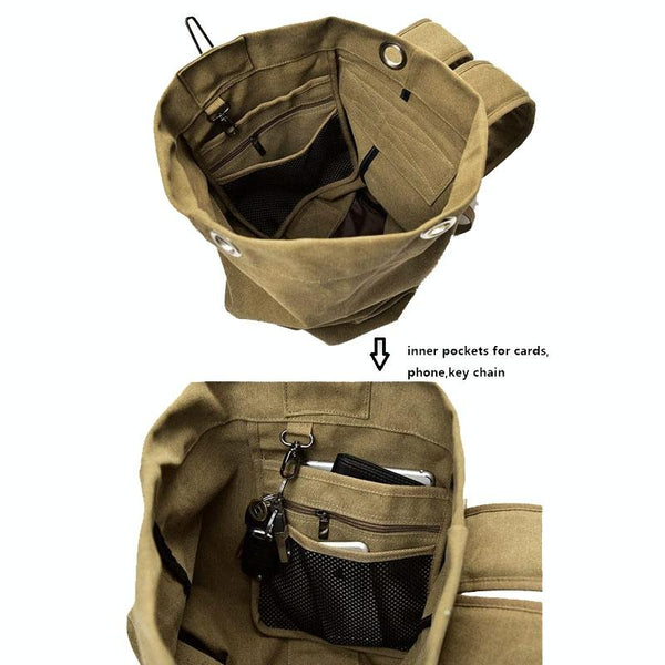 Upgrade Zipper Pockets Outdoor Travel Man Canvas Double Shoulder Backpack Student Schoolbag, Specification: Large Black