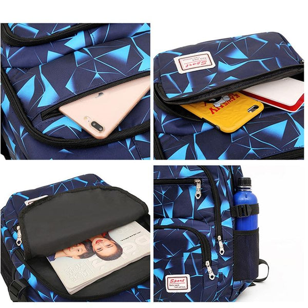 WA208 3 In 1 Diamond Print Canvas Backpack Shoulder Bag Student Schoolbag(Blue)
