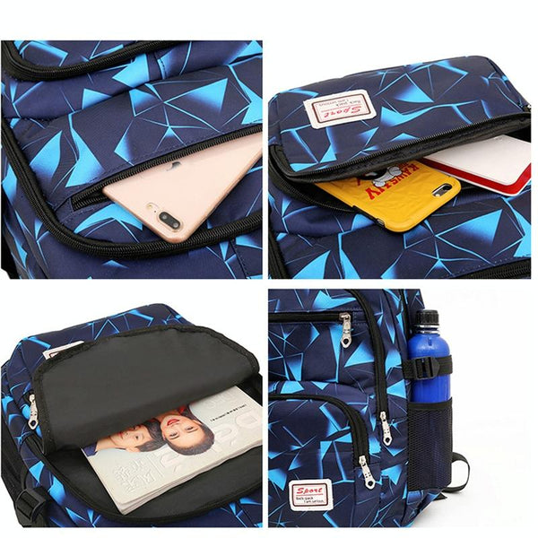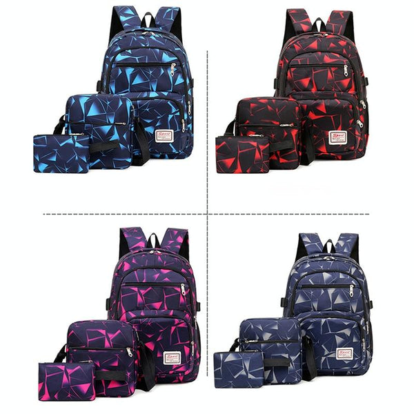 WA208 3 In 1 Diamond Print Canvas Backpack Shoulder Bag Student Schoolbag(Grey)