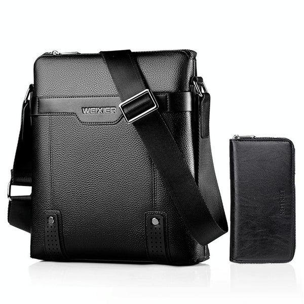 WEIXIER 18067 2 In 1 Men Leisure Style PU Leather Single Shoulder Bag with Handbag (Black)