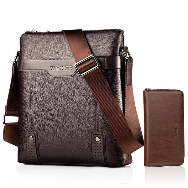 WEIXIER 18067 2 In 1 Men Leisure Style PU Leather Single Shoulder Bag with Handbag (Brown)
