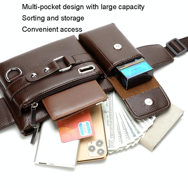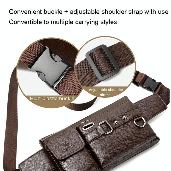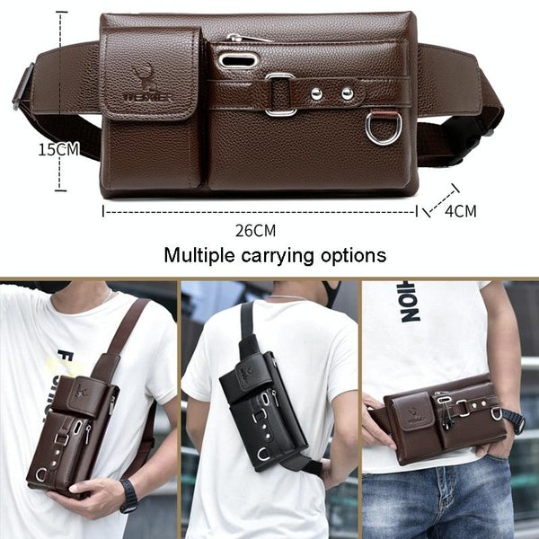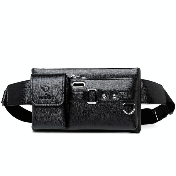 WEIXIER 8117 Men Sports Waist Bag Multi-Function Outdoor PU Bag(Black)