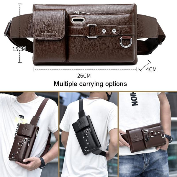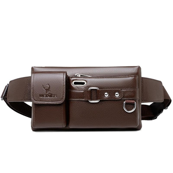 WEIXIER 8117 Men Sports Waist Bag Multi-Function Outdoor PU Bag(Brown)