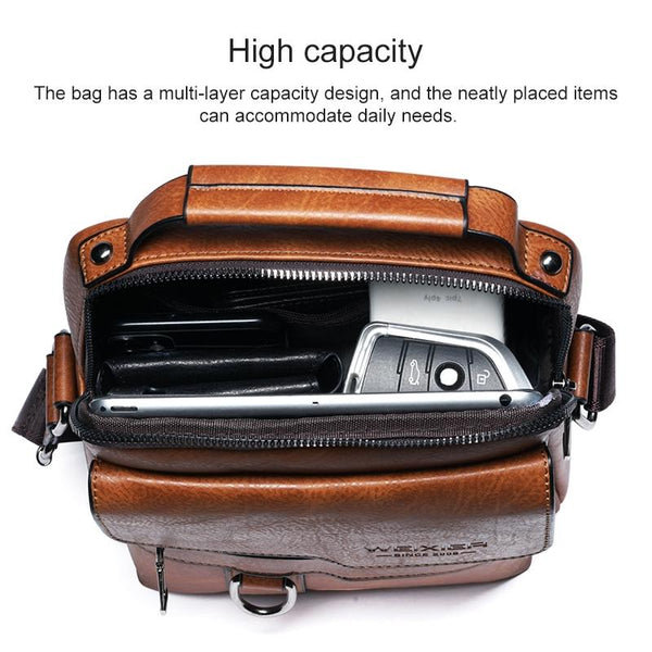 WEIXIER 8642 Men Business Retro PU Leather Handbag Crossbody Bag (Dark Brown)