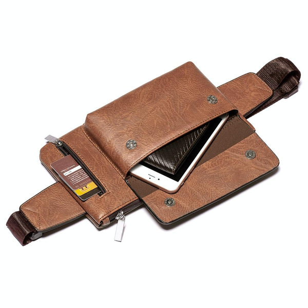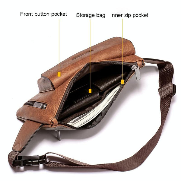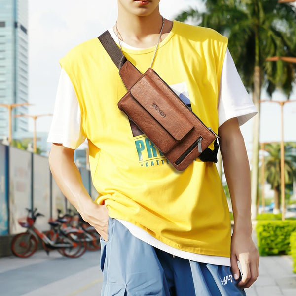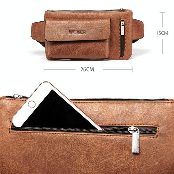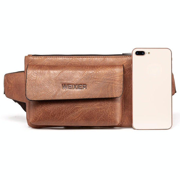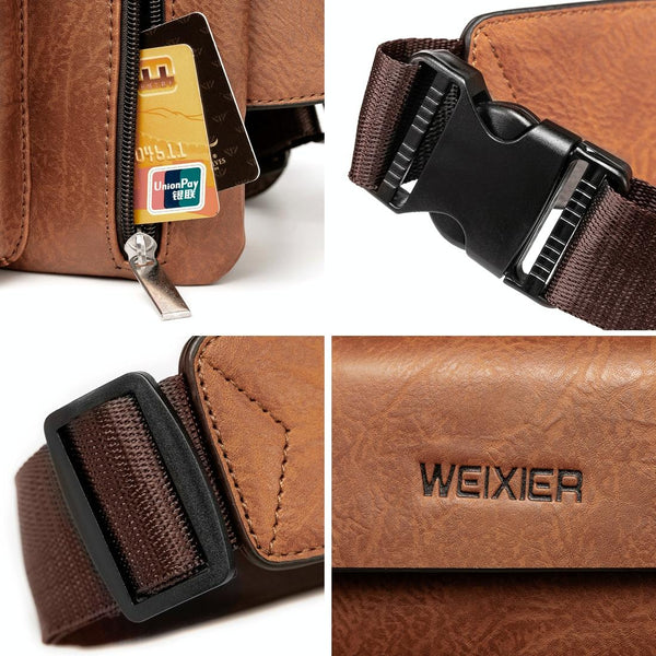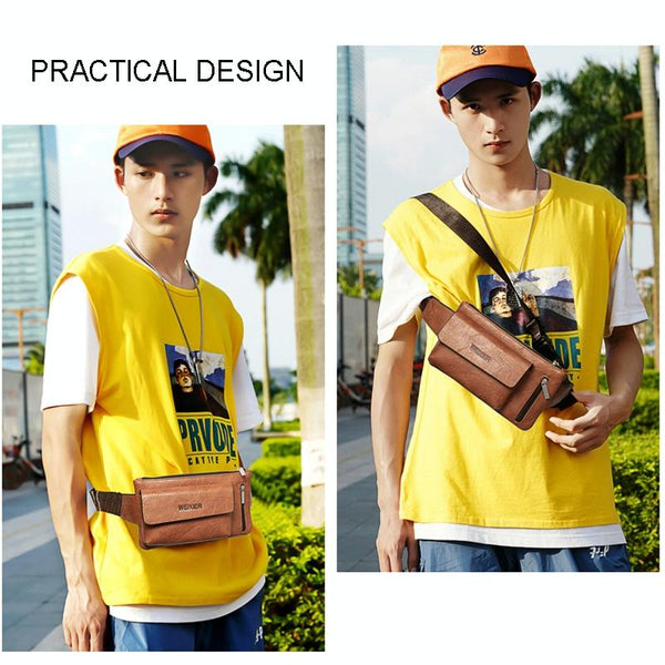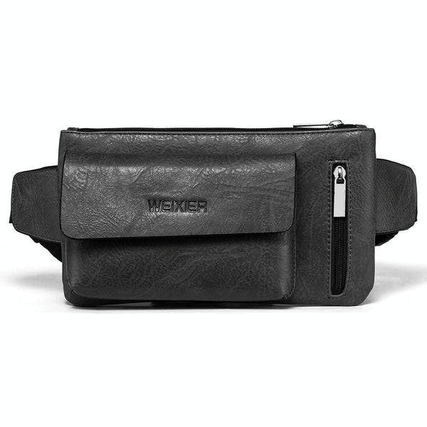 WEIXIER 9526 Men Leisure Style PU Leather Single Shoulder Crossbody Bag Waist Pack (Black)
