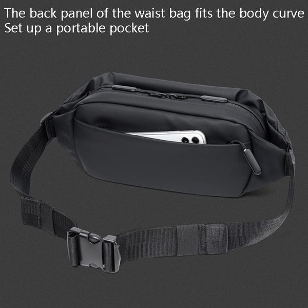 5. The back panel of the waist bag fits the curve of the body and is equipped with a portable pocket