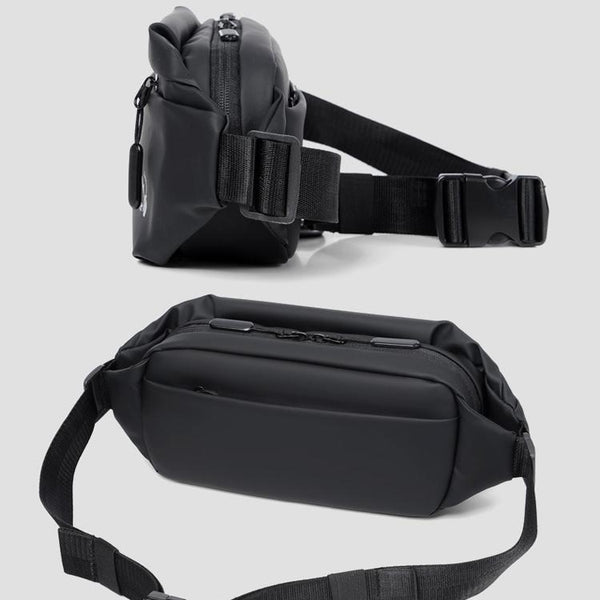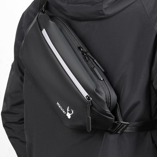 WEIXIER 9563 Men Outdoor Messenger Bag Multifunctional PU Large-Capacity Waist Bag(Black)