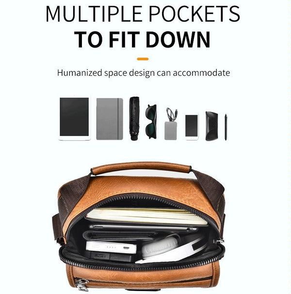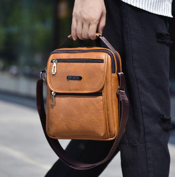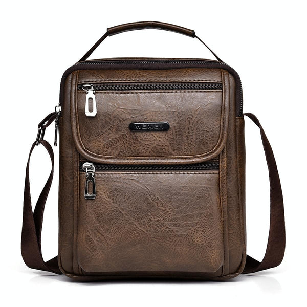 WEIXIER Retro Men Small Satchel Bag PU Shoulder Bag Commuter Messenger Bag(Dark Brown)