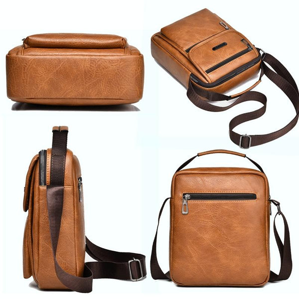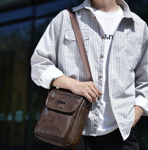WEIXIER Retro Men Small Satchel Bag PU Shoulder Bag Commuter Messenger Bag(Light Brown)