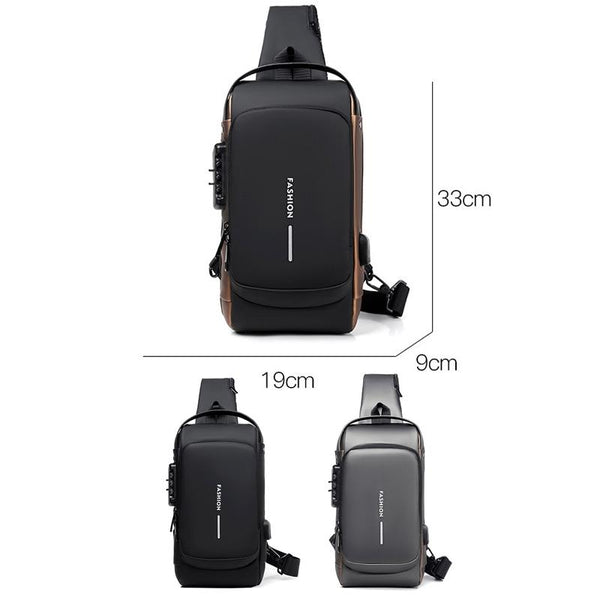 WEIXIER X306 Men Shoulder Bag With USB Charging Port Anti-Theft Chest Bag(Black Gold)