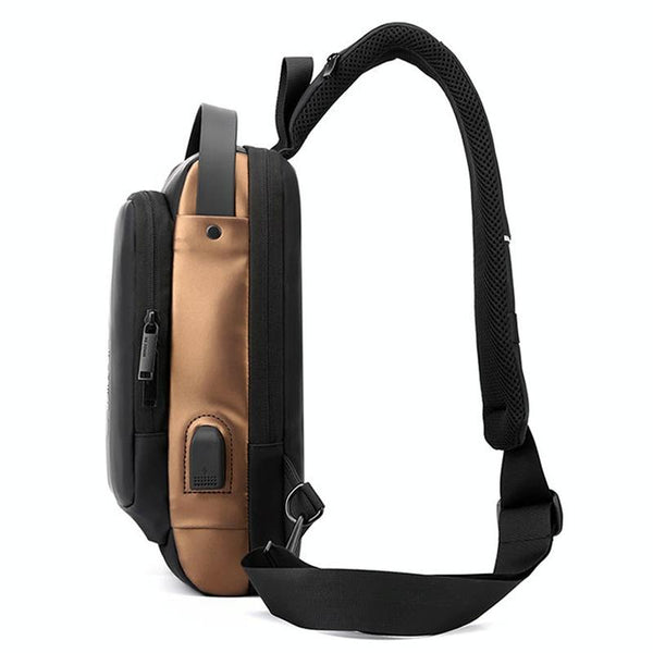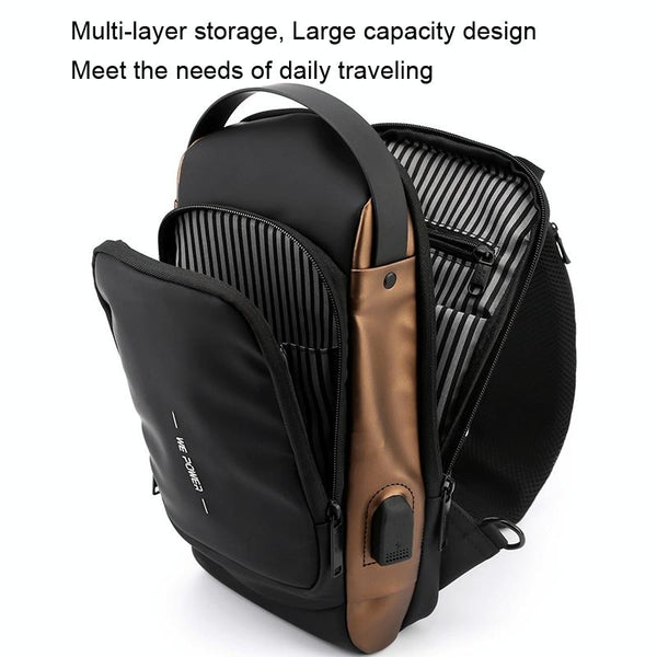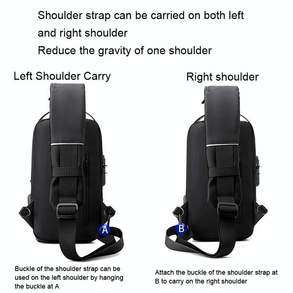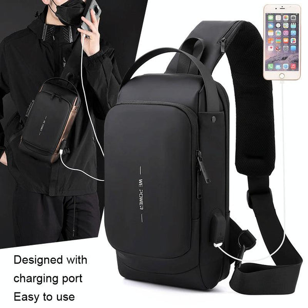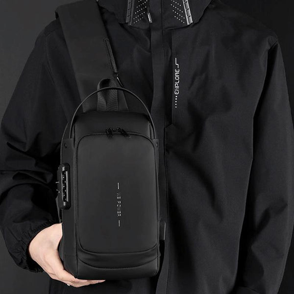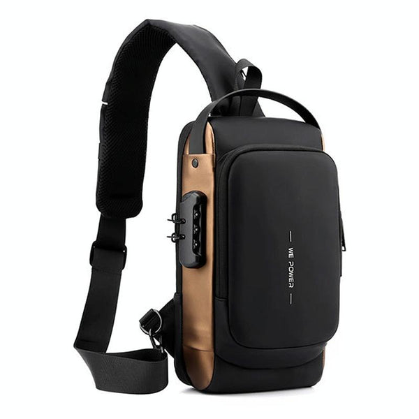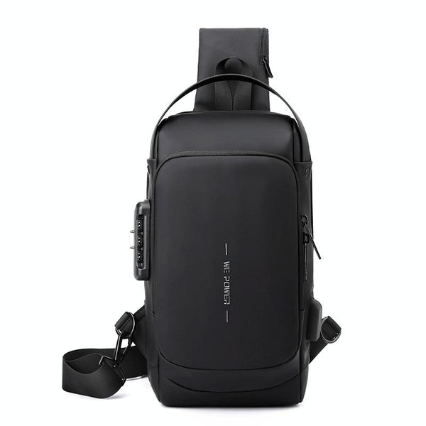 WEPOWER Men Chest Bag Anti-Theft Password Lock Locomotive Bag Messenger Bag(Black)