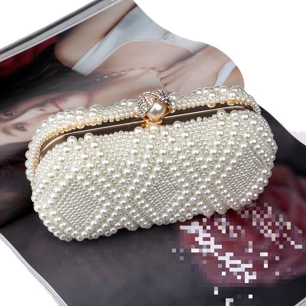Women Fashion Banquet Party Pearl Handbag Single Shoulder Crossbody Bag (Beige)