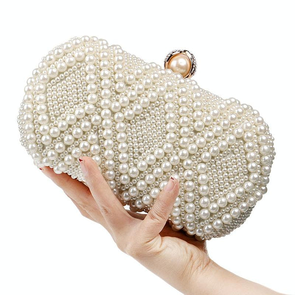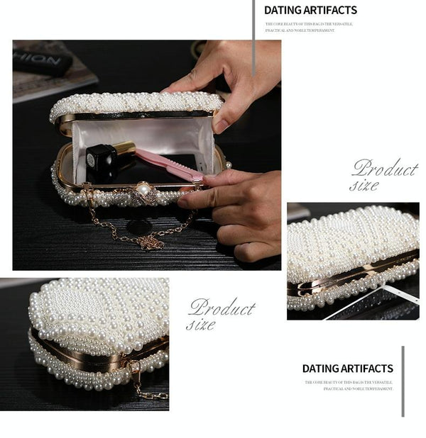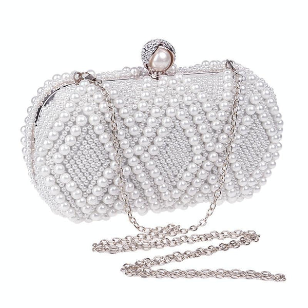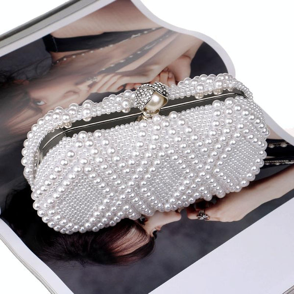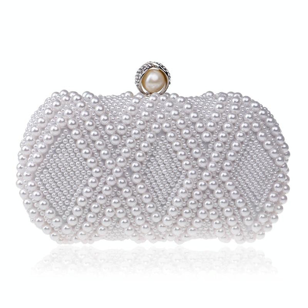 Women Fashion Banquet Party Pearl Handbag Single Shoulder Crossbody Bag (White)