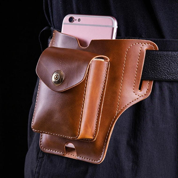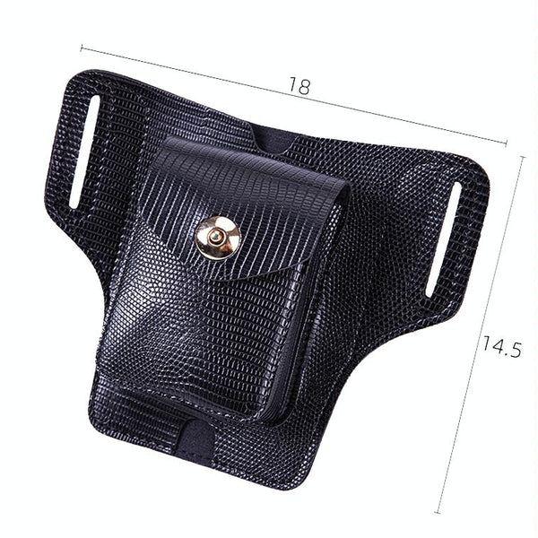 Y-17 3 In 1 Lighter Phone Cigarette Box Storage Waist Bags(Crazy Horse Black)