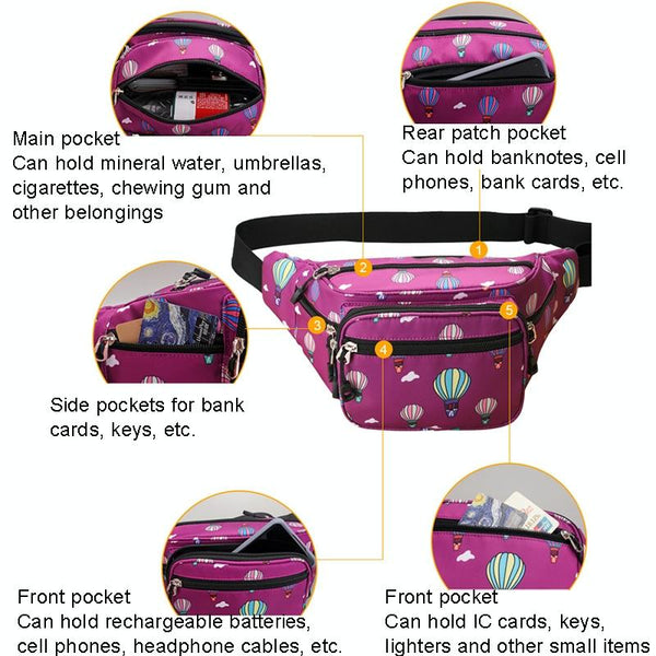 Y051 Women Summer Crossbody Waist Bag Large Capacity Cell Phone Bag(Balloon Black)