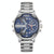 CAGARNY 6820 Fashionable Business Style Large Dial Dual Time Zone Quar0tz Movement Wrist Watch with Stainless Steel Band & Calendar Function for Men(Silver Band Blue Window)