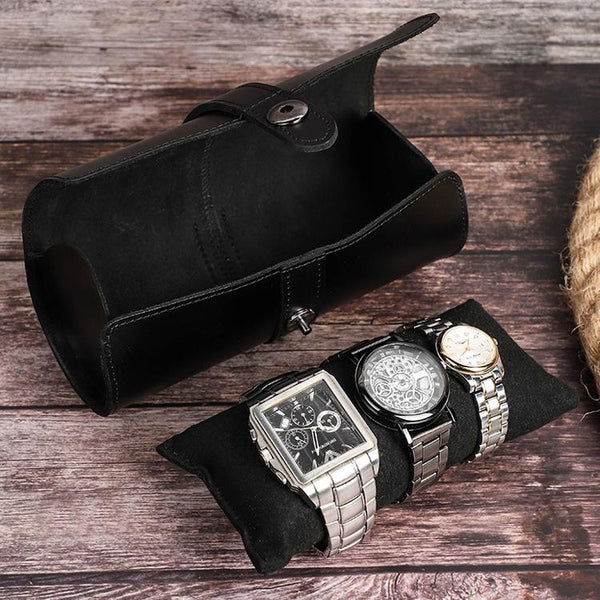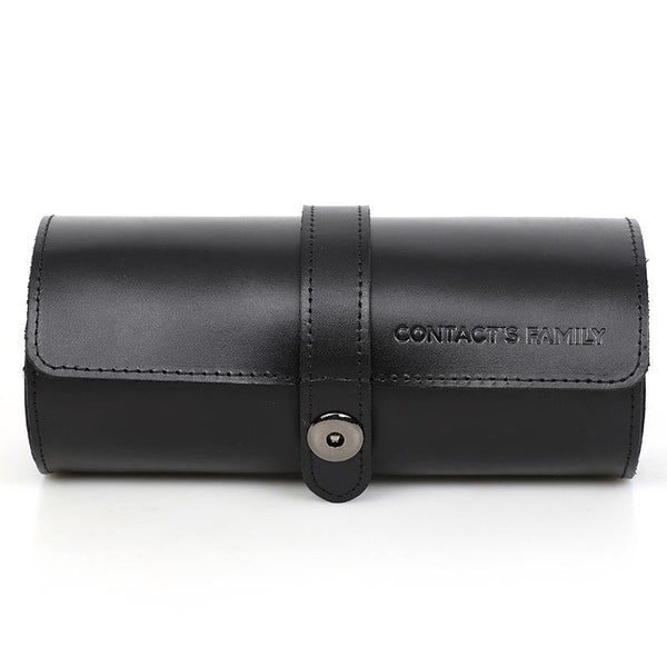 Contacts Family CF1117A 3 Watch Positions Leather Watch Box Round Buckle Outdoor Travel Watch Storage Box(Black)