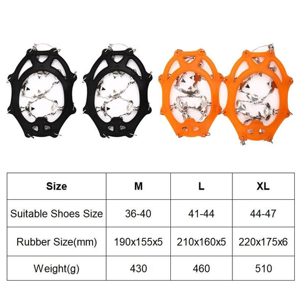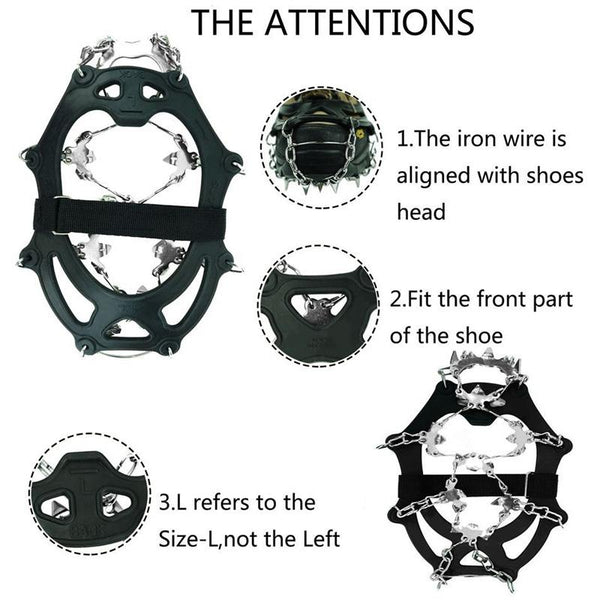 1. 26 teeth stainless steel spikes, double hook chain design, effective anti-slip