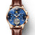 OLEVS 9912 Hollow Flywheel Week Calendar Dial Luminous Mechanical Watch for Men(Rose Gold Shell Blue Surface)