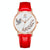 YAZOLE 360 Leather Band Dove of Peace Diamond Lady Watch(White+Red)