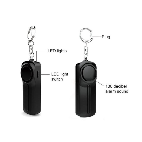 130dB Personal Safety Alarm Keychain with LED Light - Black