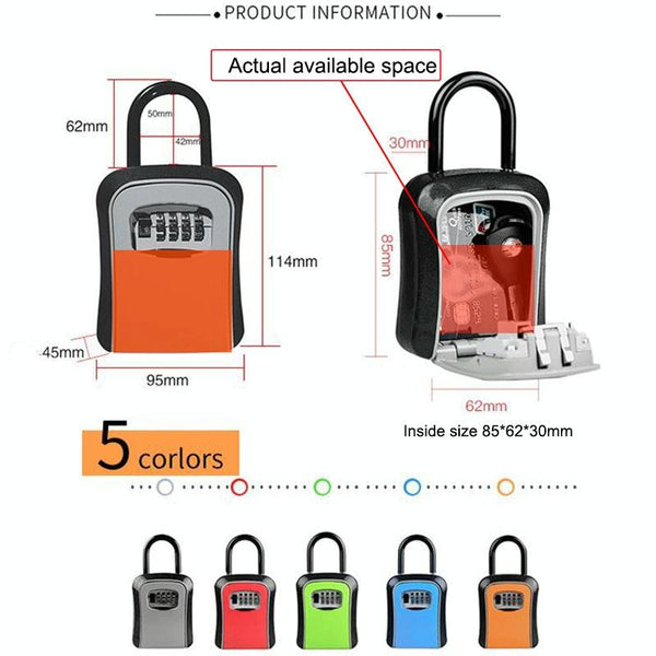 Portable Car Key Safe Box - 4 Digit Combination Lock (Orange)