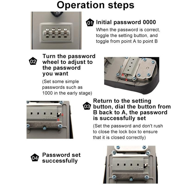 Keep your keys safe and secure with this robust aluminium alloy key safe box in a stylish black finish. Its thickened, weatherproof design protects against the elements, offering peace of mind for home, office, or rental properties. The spacious interior accommodates multiple keys, plus cards such as door entry fobs, bank cards, and ID cards. Enjoy easy password changes and dual access via password and key for added security. Available in black and grey.