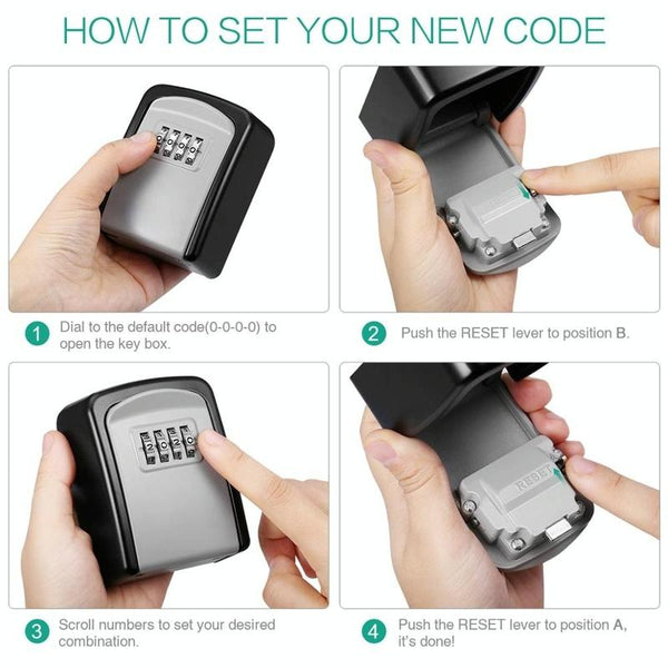 Keep your spare keys safe and secure with this robust wall-mounted key safe. Crafted from durable aluminium alloy, this weather-resistant key safe protects against theft and unauthorised access. The 4-digit combination lock offers thousands of possible combinations for enhanced security, giving you peace of mind. Ideal for securely storing house keys, car keys, or access cards for family, guests, or emergency services. Perfect for homes, holiday lets, businesses, and more.