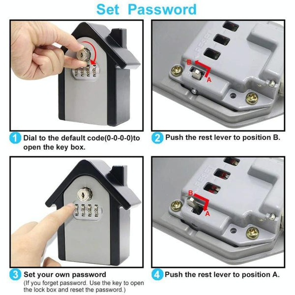 Key Safe Box - Wall Mounted Combination Lock - Grey