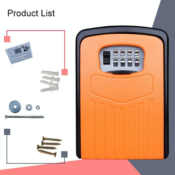 Large Wall Mounted Key Safe Box - 10,000 Combination Lock (Orange)