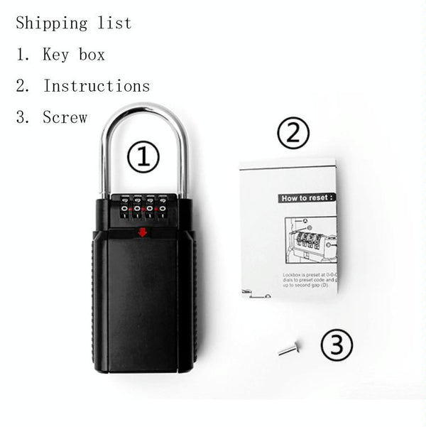 Keywords: key safe, key storage, wall mounted key safe, combination lock, secure key storage, outdoor key safe, key box, key cabinet, weatherproof key safe, 4 digit combination lock, alloy steel key safe, secure access, key management, rental property key safe, holiday let key safe.