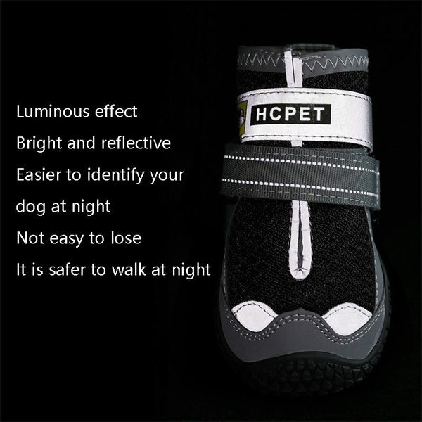 These dog shoes are designed for ultimate comfort and protection, whether your dog is hiking, running, or simply strolling around the neighbourhood. The breathable mesh fabric ensures optimal airflow, preventing overheating and keeping your dog's paws comfortable. The reflective strips provide added safety during evening walks, making your dog easily visible to motorists. The robust rubber sole offers excellent grip and stability on various surfaces, protecting your dog's paws from sharp objects, hot pavements, and rough terrain.