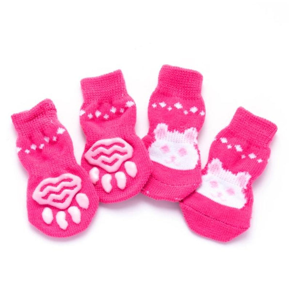 Pink Rabbit Anti-Slip Dog Socks (4 Pack, M)