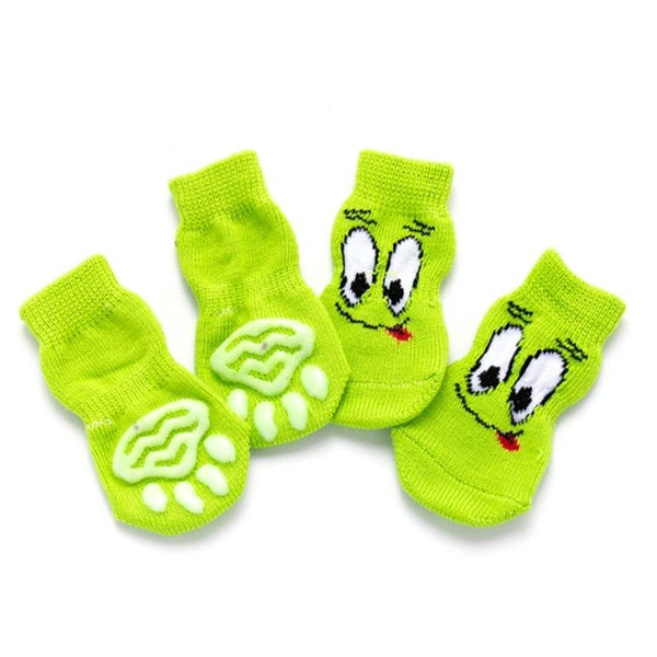 Anti-Slip Dog Socks, Small (Green Eyes) - 4 Pack