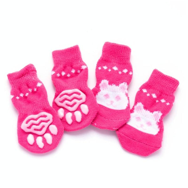 Pink Rabbit Dog Socks, Anti-Slip, Small (4 Pack)