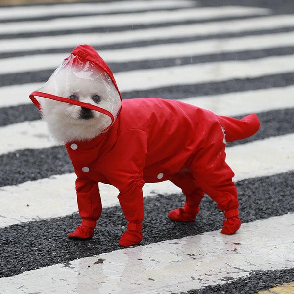 Waterproof Dog & Cat Raincoat with Visor & Shoes, Red, S