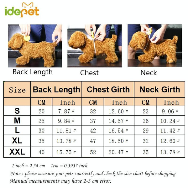 Please allow for 1-3 cm error in manual measurements (1 inch = 2.54 cm). For two-legged clothing, prioritise chest girth. For four-legged garments, ensure both chest girth and back length are suitable.