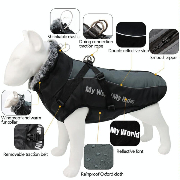 Reflective Dog Coat XL, White - Waterproof, Windproof Winter Jacket