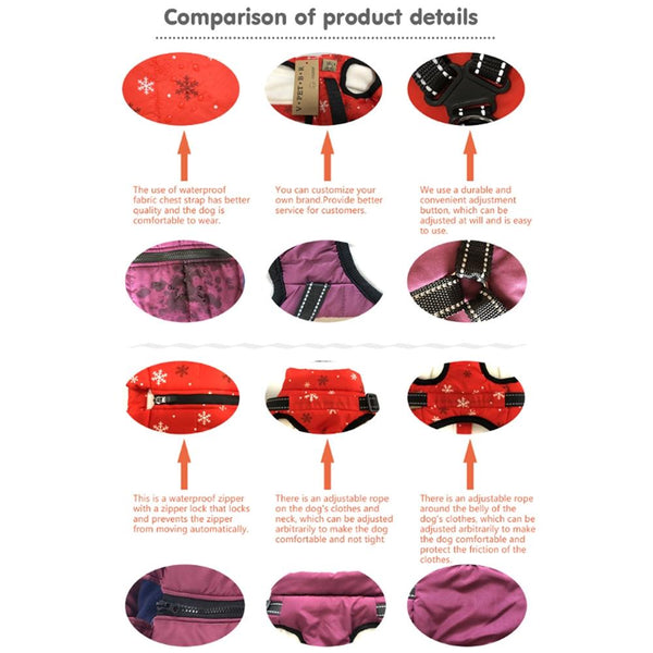 Keep your furry friend cosy and visible this Christmas with our festive Snowflake Dog Coat. Crafted from water-repellent polyester with a warm polar fleece lining, this coat protects against rain, snow, and chilly winds. The reflective tape ensures safe nighttime walks, while the robust nylon zipper and high-strength buckle for lead attachment offer practicality and security. Perfect for winter adventures, this coat is available in size L.