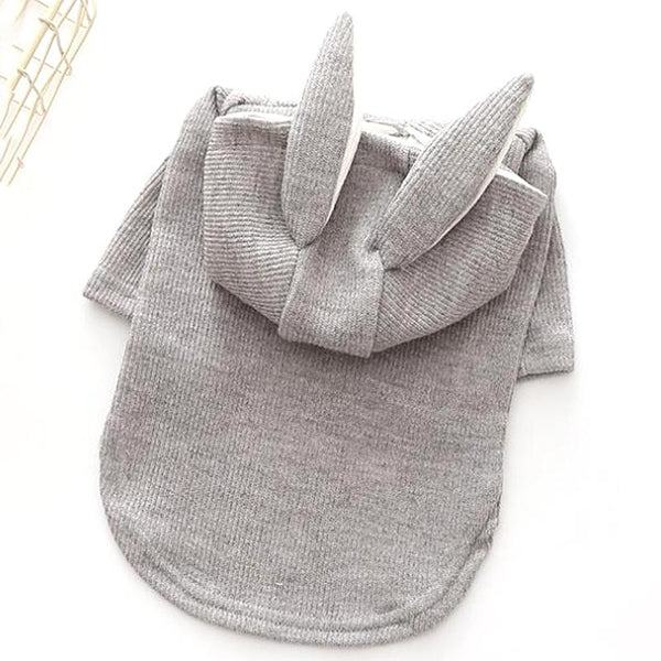 Grey Rabbit Ear Pet Hoodie, Size L - Dog/Cat Sweatshirt