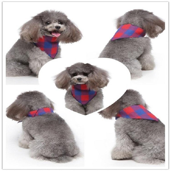 Large Cotton Pet Bandana, Red Black Grid, 73x50x50cm
