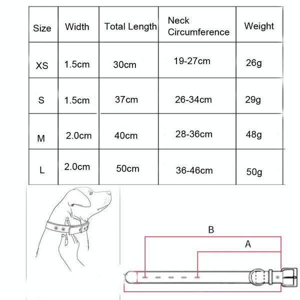 - Size Small: 1.5cm wide collar, 37cm total length, fits neck circumference 26-34cm