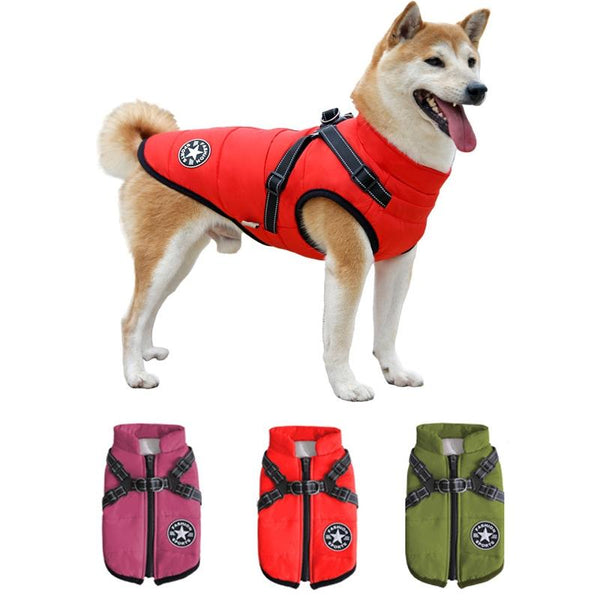 XL Army Green Dog Winter Coat - Warm, Waterproof, Reflective