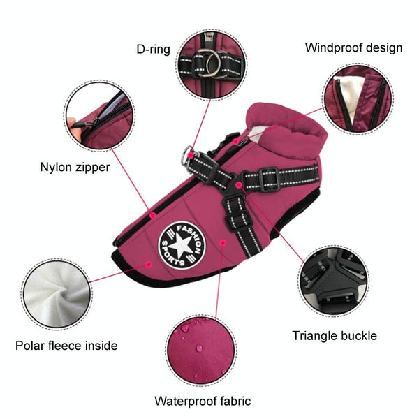 XXL Purple Dog Winter Coat - Water-Repellent, Fleece Lined