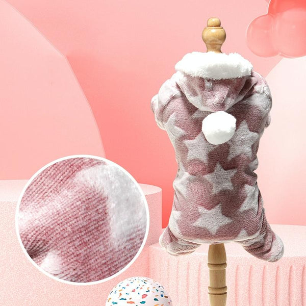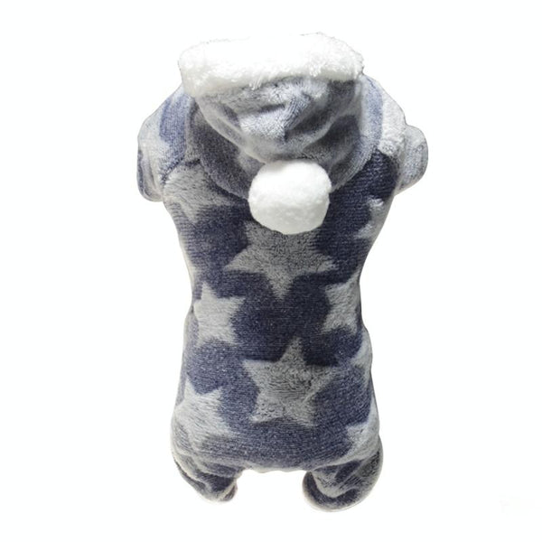 Navy Blue Dog Flannel Hoodie, Size L | Warm Coral Fleece | Cosy Pet Costume