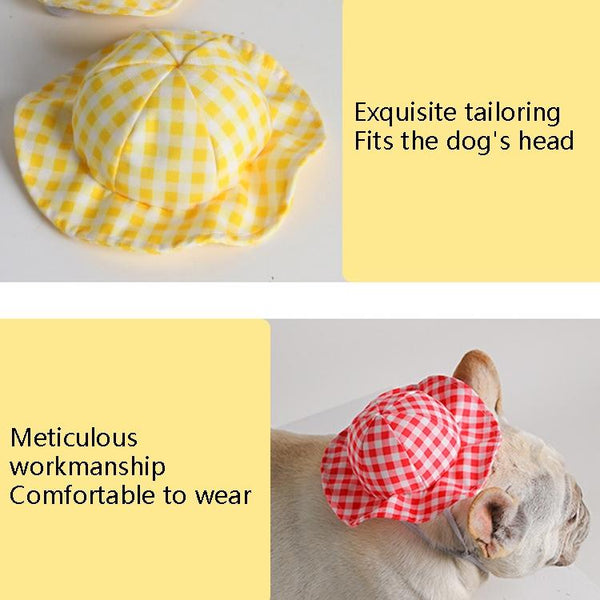 Dog & Cat Summer Sun Hat - Blue Grid - Medium