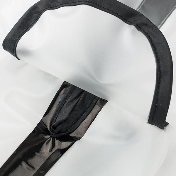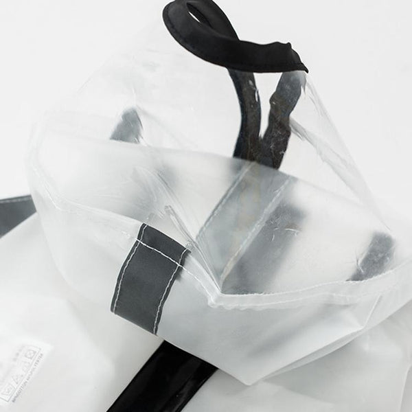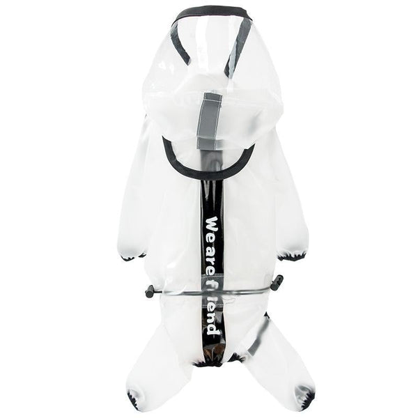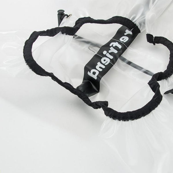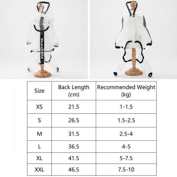 Keep your canine companion dry and comfortable with this waterproof dog raincoat. Made from lightweight, breathable TPU, this transparent poncho allows your dog's personality to shine through while protecting them from the elements. The matte white finish adds a touch of style. This four-foot design features an enlarged hood brim and lengthened legs for maximum coverage, while the waisted design ensures a comfortable fit. Reflective strips enhance visibility during nighttime walks. Available in size L (back length 36.5cm), suitable for dogs weighing approximately 4-5kg. Browse our other sizes (XS-XXL) for the perfect fit for your furry friend. This durable and environmentally friendly raincoat is essential for walks in wet weather.
