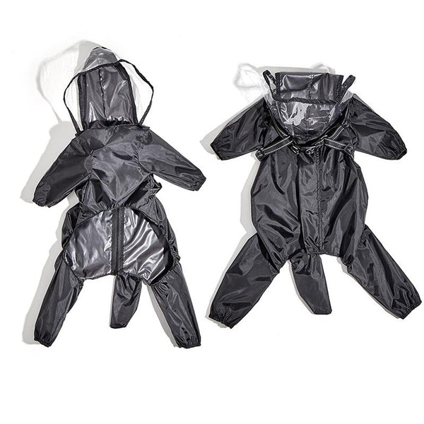The transparent 360° brim shields your dog's eyes from rain without obstructing their vision, while the detachable tail sleeve offers added convenience and flexibility. The easy-wear design features a smooth zipper placket and a secure buckle system for quick and effortless dressing.